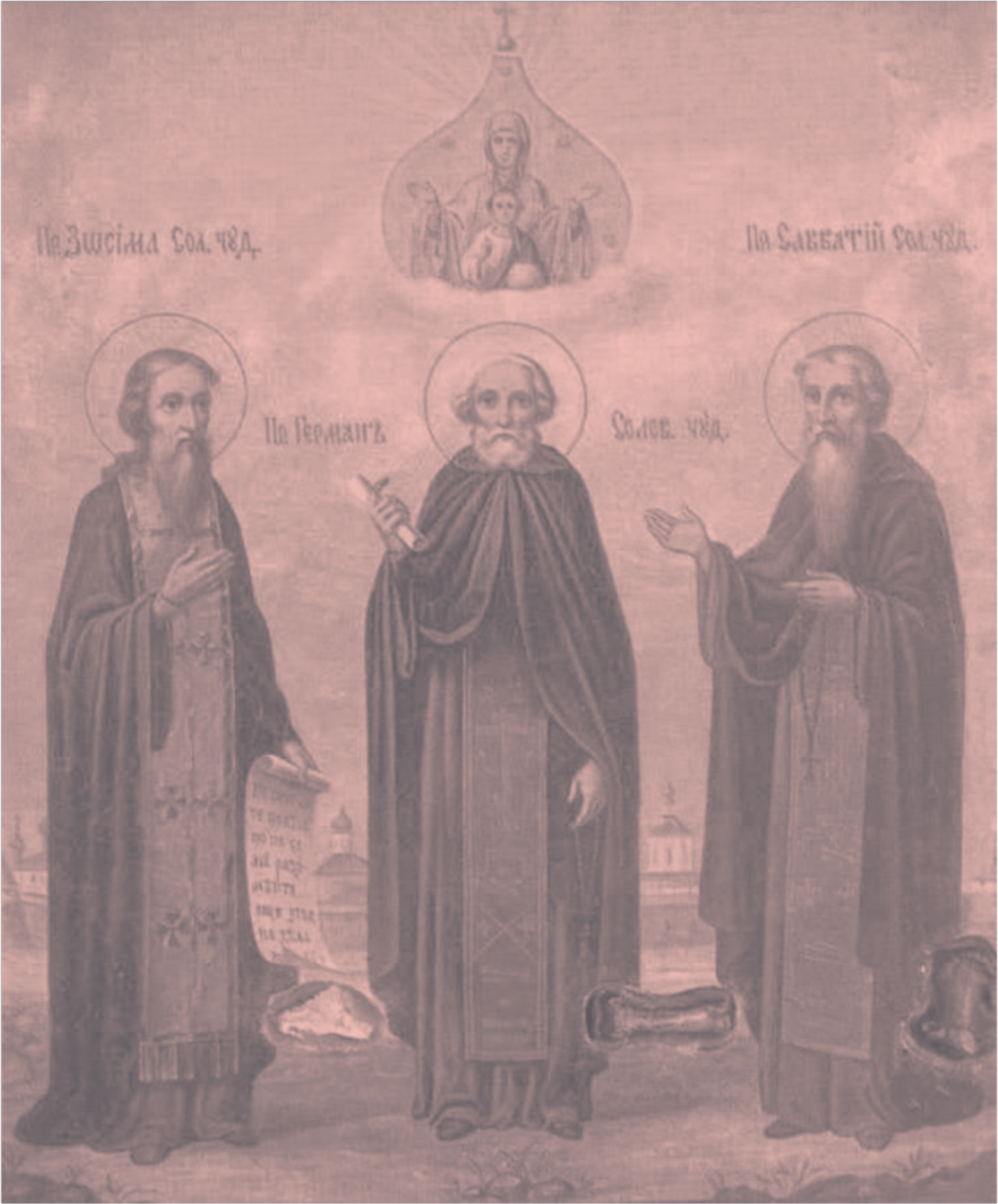 Как гласит предание, однажды во время прогулки по острову у преподобного Зосимы было видение, он увидел прекрасную церковь, парящую в воздухе — на берегу современной Бухты благополучия. Это было принято за знак: был заложен крест и было дано начало Соловецкой обители.